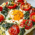 As you break the glossy surface of the egg, a rush of warmth envelops you, rich and comforting. The feta cheese melts into a luxurious blanket of flavor that harmonizes beautifully with the peppery notes of spinach and the sweetness of the tomatoes. It’s a delightfully comforting scene as the dish pulls you in, promising nourishment that feels wholesome yet indulgent. The vibrant colors and inviting aroma captivate your heart, making each moment spent preparing this dish a joyful experience.