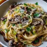 Picture this: sitting around a flickering candlelight, the table adorned with fresh herbs and vibrant colors, you take your first forkful of this creamy pasta. The first mouthful surprises you with a perfect balance of flavor—the sweetness of the caramelized leeks entwined with the nutty depth of Gruyère. As you savor each bite, the richness of the cream coats your tongue, while the slight crunch from the sautéed mushrooms provides a delightful contrast. This isn’t just food; it’s an experience, a memory waiting to be made, one delicious forkful at a time.