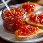 A vibrant and flavorful sweet chili jam inspired by Caribbean flavors, perfect for elevating your snacks.
