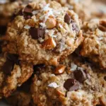 Hearty and flavorful cookies packed with oats, nuts, coconut, and chocolate chips for a delightful treat.