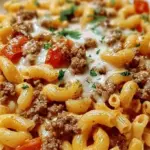 As the day winds down and the golden hues of sunset slip through your kitchen window, a warm, savory aroma beckons you toward the stove. Outside, the chill of night creeps in, but inside, you prepare yourself for a cozy and comforting culinary experience. Imagine a bubbling pot of creamy goodness, filled with tender elbow macaroni entwined with perfectly seasoned ground beef, all enveloped in a velvety sauce punctuated by the gentle heat of zesty diced tomatoes. Each bite offers a delightful balance of textures; the smooth creaminess of cream cheese mingles with sharp bursts of cheddar, while the warmth of garlic and onion wafts up, wrapping you in a scented embrace that feels like home.