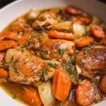 This dish captures the heart of home-cooked meals, effortlessly combining flavors that radiate comfort and familiarity. Imagine juicy chicken thighs shimmering with tender love, lovingly cooked until they fall off the bone. The carrots, softened to perfection, burst with natural sweetness against the rich backdrop of the chicken, while the potatoes absorb the essential oils from the herbs, creating a symphony of textures and tastes.