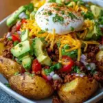 Picture the satisfaction of a meal that effortlessly combines the joy of tacos with the rustic comfort of a baked potato. As you prepare this delightful dish, the fresh colors of tomatoes and greens pop against the fluffy backdrop of seasoned potatoes. This isn’t just another meal; it’s an opportunity to gather loved ones around the table, filling the air with laughter and shared excitement over every delicious bite. Whether it’s a weeknight family dinner or a casual get-together with friends, the Loaded Potato Taco Bowl creates connections through its vibrant flavors and heartwarming ingredients.