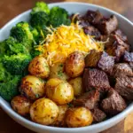 This dish is a lifesaver for busy evenings! It’s quick to prepare, taking just 45 minutes from start to finish. The flavors are simply irresistible, with juicy steak bites, crispy potatoes, and cheesy broccoli that will have your family raving. Plus, it’s versatile! You can easily customize it to suit your family’s tastes. Trust me, this meal will become a favorite in your household!
