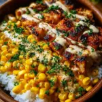 When you take your first bite of a Street Corn Chicken Rice Bowl, a symphony of flavors erupts on your palate. Juicy chicken, tender and golden-brown, mingles with the sweetness of charred corn, creating an unforgettable medley. Each mouthful introduces a delightful crunch from the corn, offset by the creamy elote sauce, while the zesty cilantro and freshly squeezed lime juice dance vibrantly in the background. The aroma of garlic and spices wafts through the air, pulling you closer to the table, igniting your appetite, and welcoming a cozy, inviting ambiance that connects everyone around the meal.